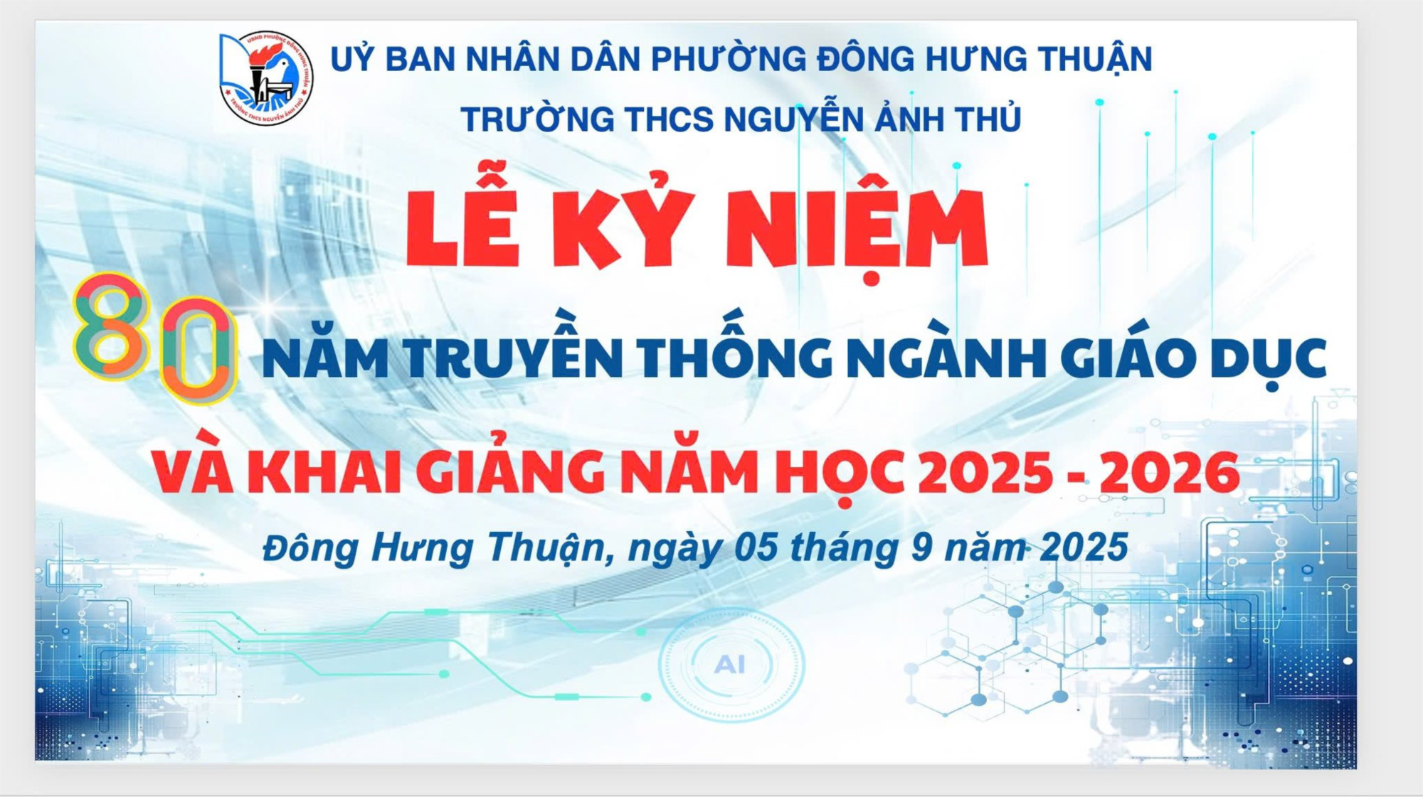 Điều đặc biệt nhất của ngày hôm nay đó chính là Trường THCS Nguyễn Ảnh Thủ cùng toàn thể học sinh tiếp sóng trực tiếp Lễ Khai giảng chào mừng 80 năm thành lập Bộ Giáo dục Quốc gia (1945–2025), được truyền hình từ Trung tâm Hội nghị Quốc gia, càng làm bầu không khí ngày khai giảng thêm trang trọng. Và đây cũng là lần đầu tiên, tất cả các cơ sở giáo dục trên toàn quốc chào cờ, hát Quốc ca cùng một thời điểm trong lễ khai giảng năm học mới 2025-2026 với sự tham dự của khoảng 1,6 triệu thầy cô giáo và gần 26 triệu học sinh, sinh viên.